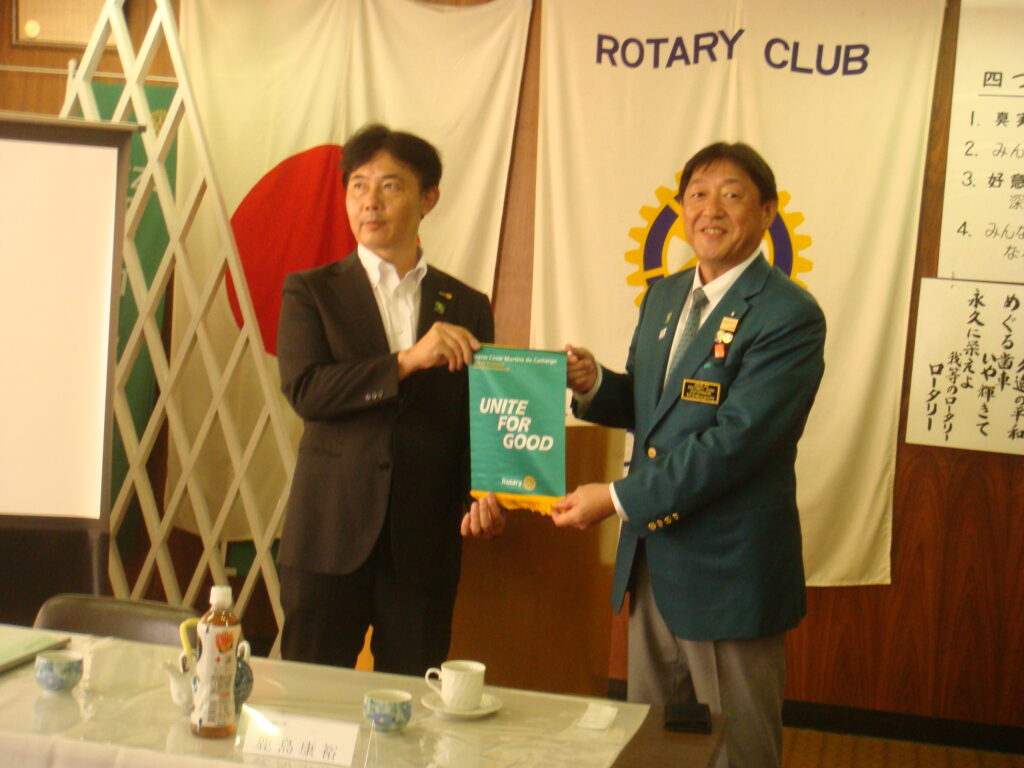 説明のあと坂口ガバナーより、少人数でも地道な活動を続けようと会員が頑張っている事や、昨年は会員の純増1を達成した事に評価を頂きました。