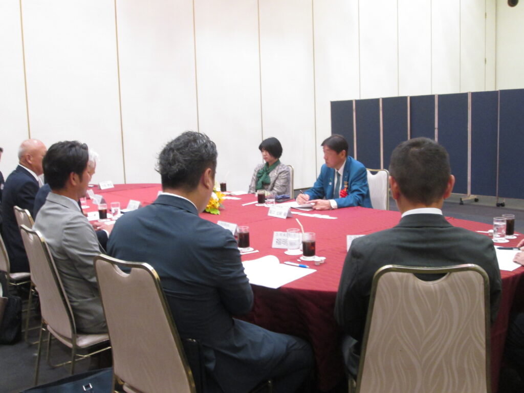例会に先立ち行われた懇談会には、会長・幹事・副幹事に加え、入会5年未満の会員6名が参加し、ガバナーにもご満足いただけたご様子でした。懇談会では「品格を旨とする」という会長メッセージに基づく運営方針、幹事よりクラブ概況の説明を行いました。