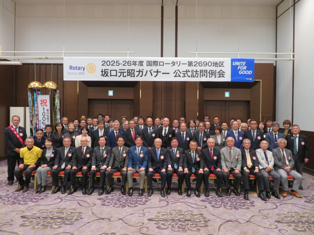 2025年10月20日、国際ロータリー2690地区、地区ガバナー坂口元昭様、同代表幹事、同地区大会実行委員長をお迎えし、ガバナー会長幹事懇談会、ガバナー公式訪問を開催致しました。